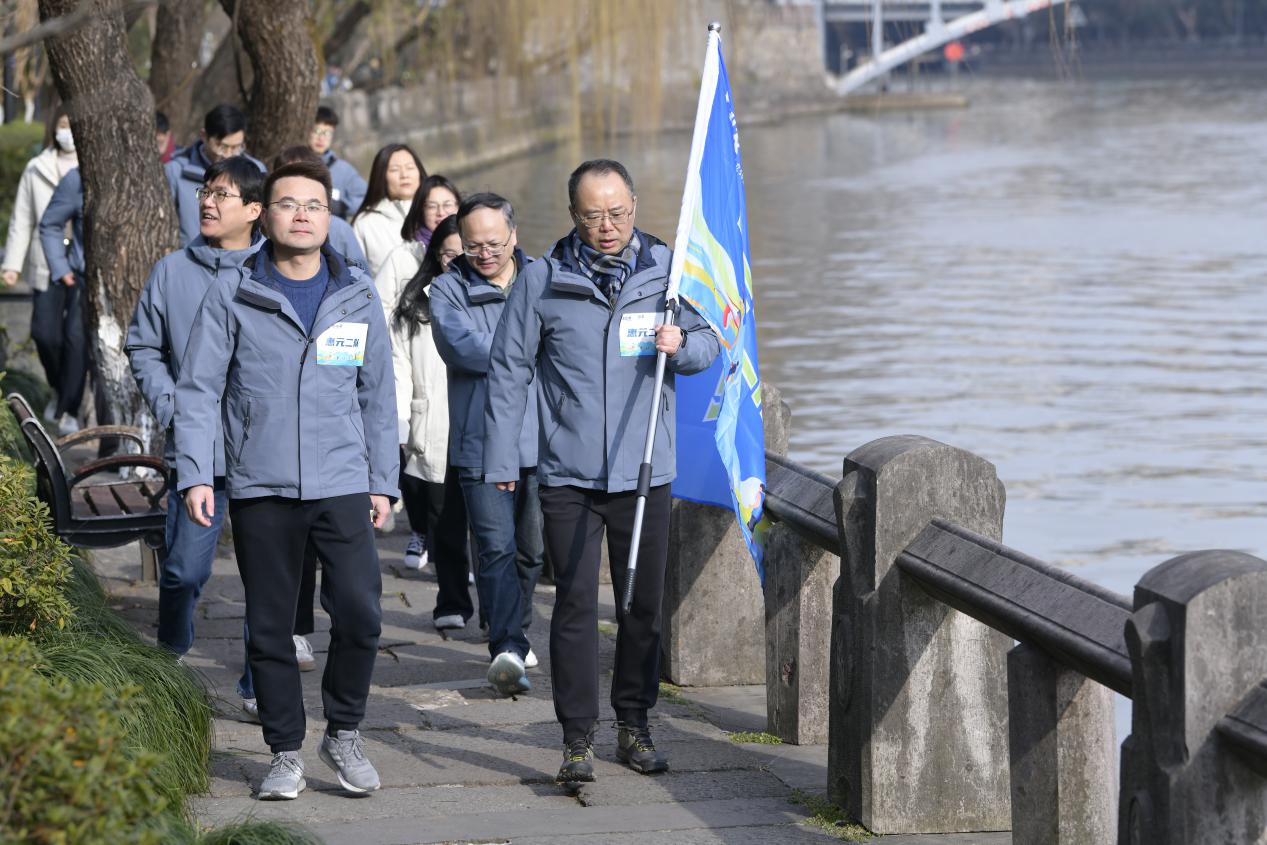 毅行活動(dòng)開啟了浙江土畜接續(xù)奮斗的全新征程。當(dāng)日上午,陽(yáng)光明媚,春和景明。隊(duì)員們精神飽滿、熱情高漲,以積極的狀態(tài)投入活動(dòng)中。伴隨著“出發(fā)”的槍聲,毅行活動(dòng)正式啟動(dòng)。大家斗志昂揚(yáng)、步履矯健,從浙江土畜舊址米市巷出發(fā),沿著京杭大運(yùn)河西岸一路向南進(jìn)發(fā),途徑公司第二個(gè)辦公舊址——浙江經(jīng)貿(mào)大樓,最終抵達(dá)公司現(xiàn)址中大廣場(chǎng)——浙江土畜總部所在地,全程超過(guò)4公里。