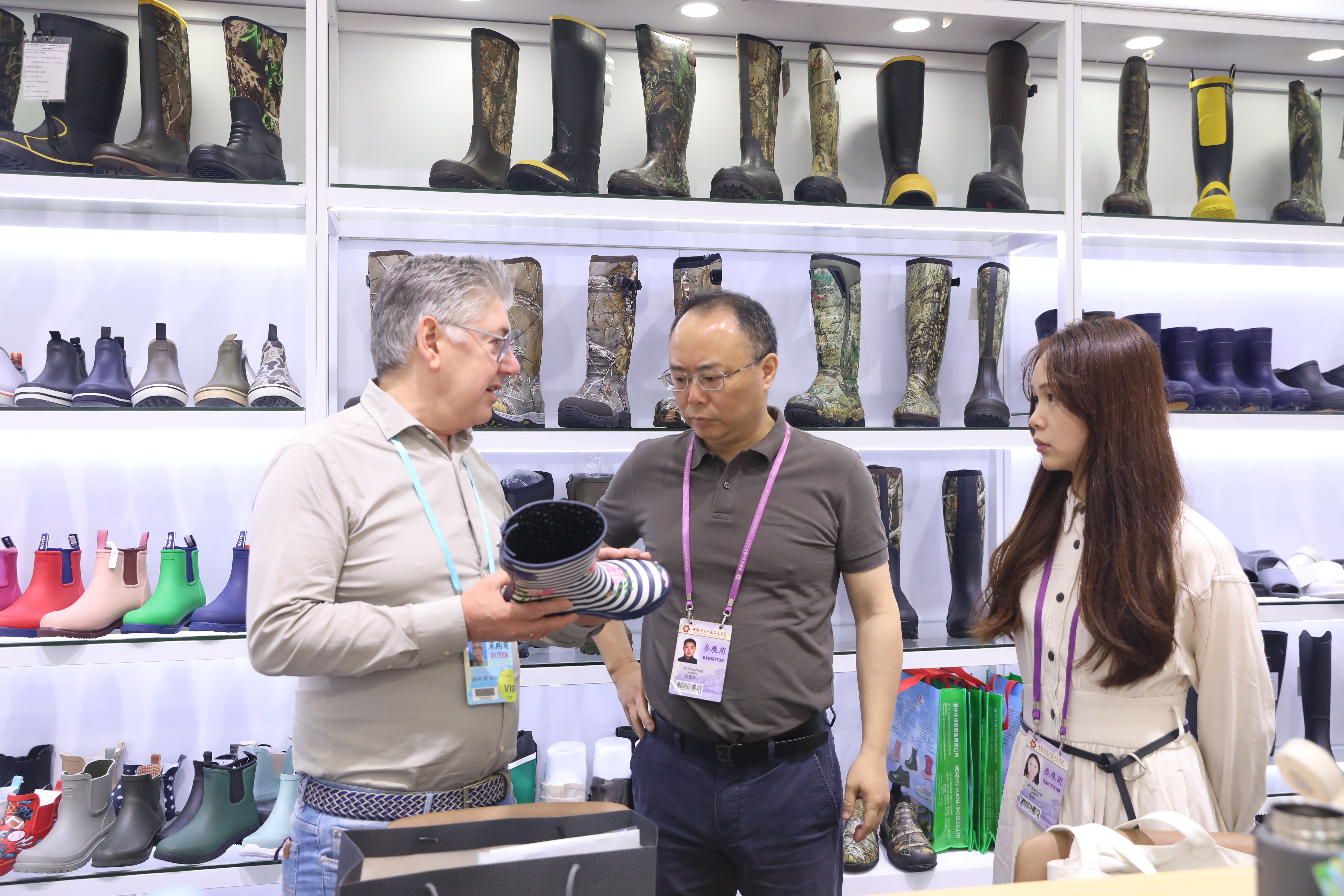 本屆廣交會(huì)浙江土畜共組織132個(gè)展位,100余名業(yè)務(wù)員參展,其中品牌展位50個(gè),占比49%;一般性展位82個(gè),占比42%,展品涵蓋25個(gè)大類,展位數(shù)量及參展人數(shù)在國(guó)貿(mào)分團(tuán)繼續(xù)保持首位。從成交金額來看,歐洲、東南亞、“一帶一路”沿線國(guó)家以及非洲市場(chǎng)表現(xiàn)突出。從成交對(duì)象來看,老客戶仍占據(jù)核心地位,家紡團(tuán)隊(duì)與德國(guó)客戶現(xiàn)場(chǎng)成交100萬美元訂單,刷新該單品現(xiàn)場(chǎng)簽約單筆紀(jì)錄。新興市場(chǎng)方面,新能源產(chǎn)品在中亞及東北亞市場(chǎng)取得突破。