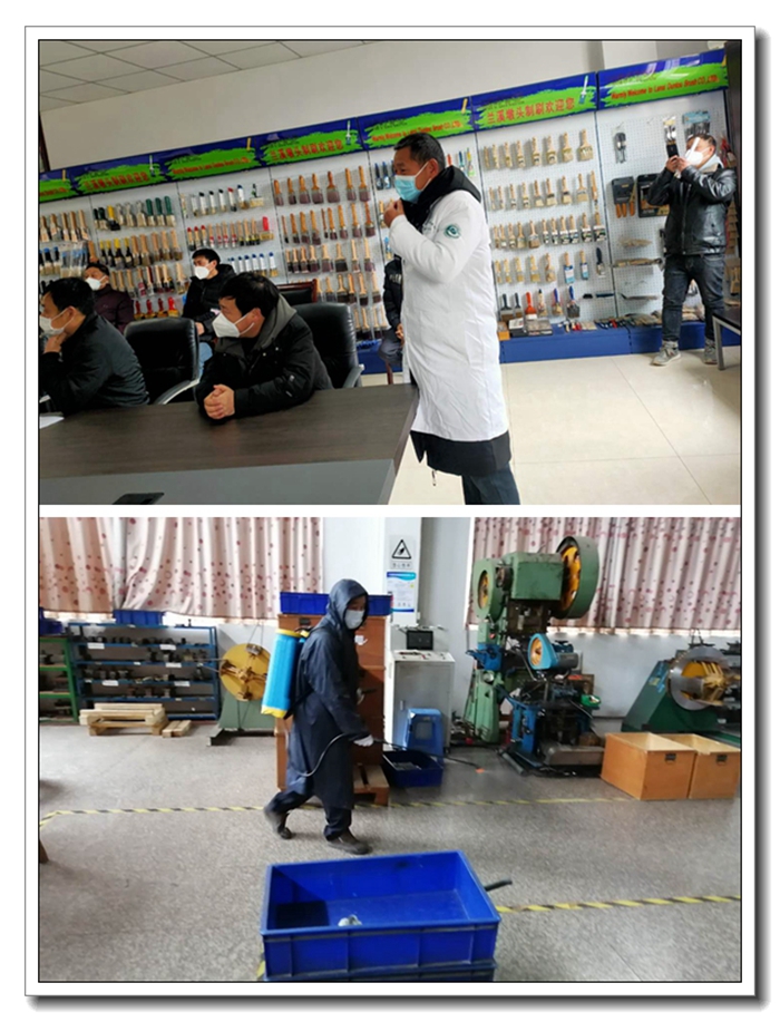 省土畜“UNIVERSE”牌漆刷是浙江省出口名牌,全國機電商會出口推薦品牌,連續多年穩居全國行業出口第一,外貿訂單量大、生產任務重。該拳頭商品依托的兩大生產基地均位于蘭溪市梅江鎮,具有與外界相對隔離的地理優勢和以本地人員為主的用工優勢。受到疫情防控影響的沖擊后,漆刷團隊負責人顧萬鈞同志與徐統一、蔣成生兩位廠長在公司統一指揮下,積極配合屬地政府認真落實各項管控措施,同時提前謀劃布局,在年前緊急采購消毒液、防護用品等物資,為有序復工創造了有利條件。