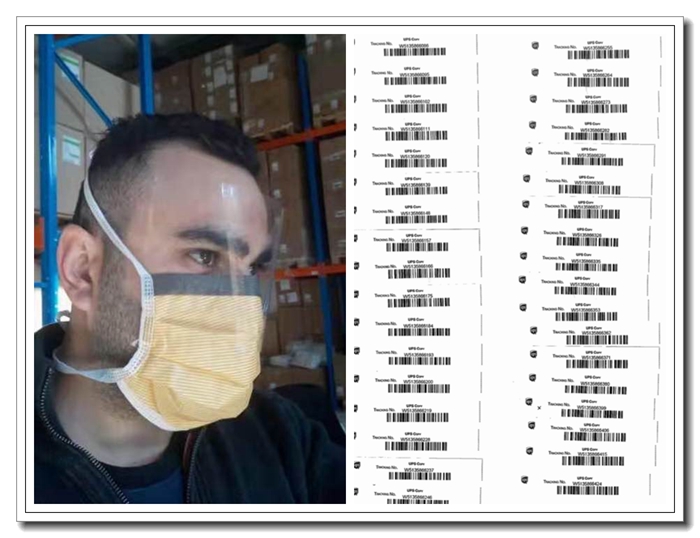 左圖為醫(yī)用防濺屏口罩 右圖為口罩運輸跟蹤單