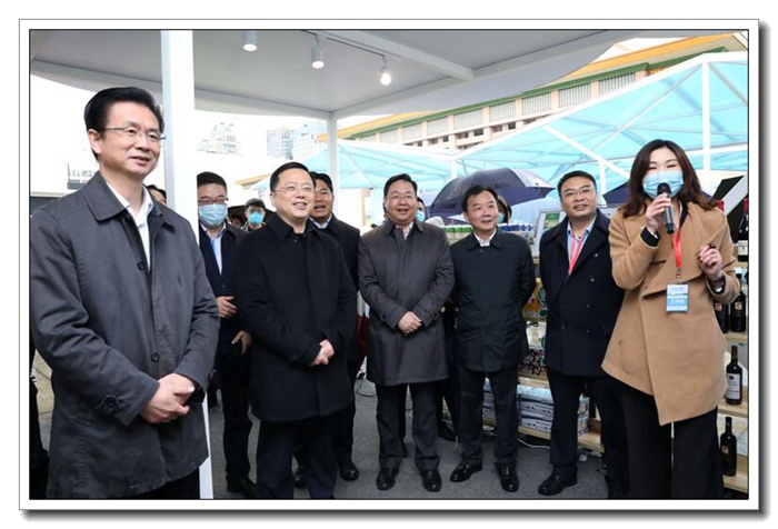 開幕日上午,省政府副秘書長高屹,省商務廳廳長盛秋平,下城區委書記劉穎等領導在省國貿集團黨委委員、副總經理黃道領,浙江土畜總經理楊躍勝的陪同下,蒞臨公司展位,現場觀看公司斯托卡羅紅酒在阿里平臺上的“云拍賣”活動。黃總代表國貿集團向到場的嘉賓們詳細介紹了浙江土畜進口的牛肉、紅酒和牛奶等產品。近年來,浙江土畜依托互聯網科技和武林商圈黨建聯盟豐富的企業資源,積極培育進口產品的新零售模式,努力促進傳統商貿業務云轉型。