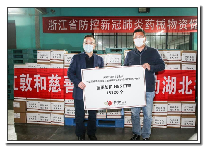 該批N95口罩共計15120只,價值 30.24萬元。經省商務廳、經信廳、藥監局三方會商,最終指定通過浙江敦和慈善基金會對外捐贈,并在3月初送達武漢,在湖北抗擊疫情一線發揮了重要作用。