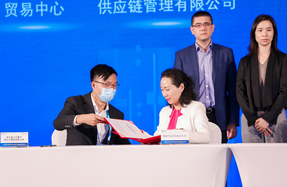 開展首日,浙江土畜參加浙江首批進口采購簽約活動——浙江歐洲數字經濟與高新技術產業高峰對接會,與巴西肉類出口龍頭企業BRF公司簽訂3000萬美元豬肉和雞肉進口合同。11月6日,浙江土畜先后參加省交易團進口采購集中簽約儀式、省重點平臺推介會,分別與西班牙Litera Meat,巴西、烏拉圭Marfrig簽訂1500萬美元豬肉和1000萬美元牛肉進口合同。