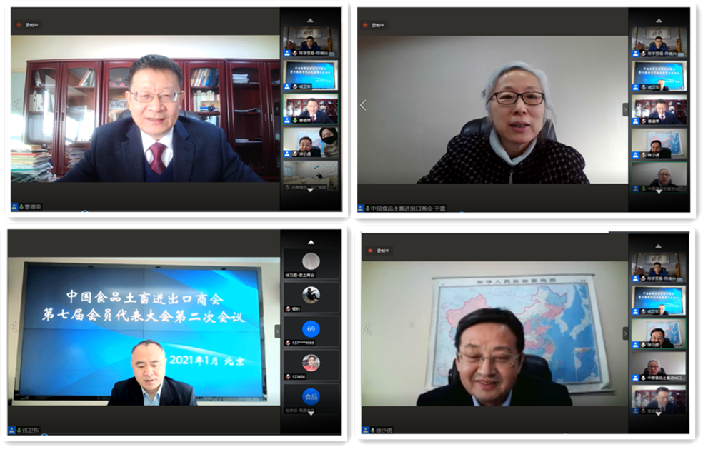 根據中國食品土畜進出口商會章程規定和工作安排,考慮到當前新冠疫情防控總體要求,2021年1月26日,食土商會以線上視頻會議方式召開了第七屆會員代表大會第二次會議。本次會議應到會員代表265名,實到代表189名,超過應到代表的三分之二,符合商會章程規定人數。