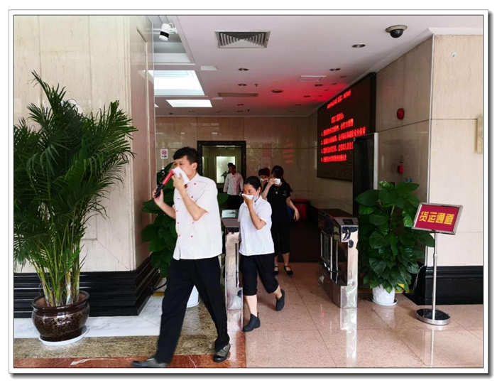 樓層安全員引導(dǎo)員工由消防通道有序撤離
