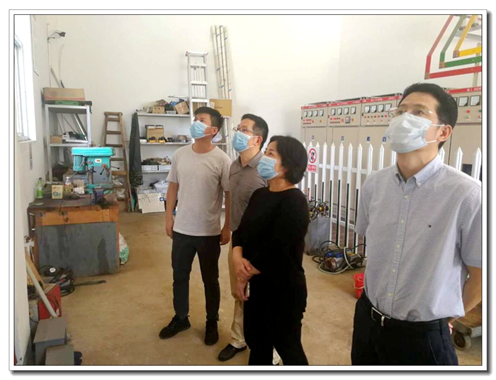 檢查組查看配電室及安全生產(chǎn)制度上墻情況
