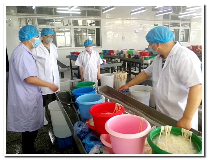 駱總率檢查組先后對(duì)廠區(qū)的污水處理中心、配電控制室、集體宿舍、食堂、加工車間等重點(diǎn)部位的設(shè)備設(shè)施運(yùn)行情況、日常巡查記錄、制度上墻等情況進(jìn)行了檢查和現(xiàn)場(chǎng)指導(dǎo)。凱興畜產(chǎn)常務(wù)副總經(jīng)理李俊向檢查組詳細(xì)匯報(bào)了企業(yè)防疫及復(fù)工復(fù)產(chǎn)情況、安全生產(chǎn)管理現(xiàn)狀及節(jié)能減排所取得的成效。