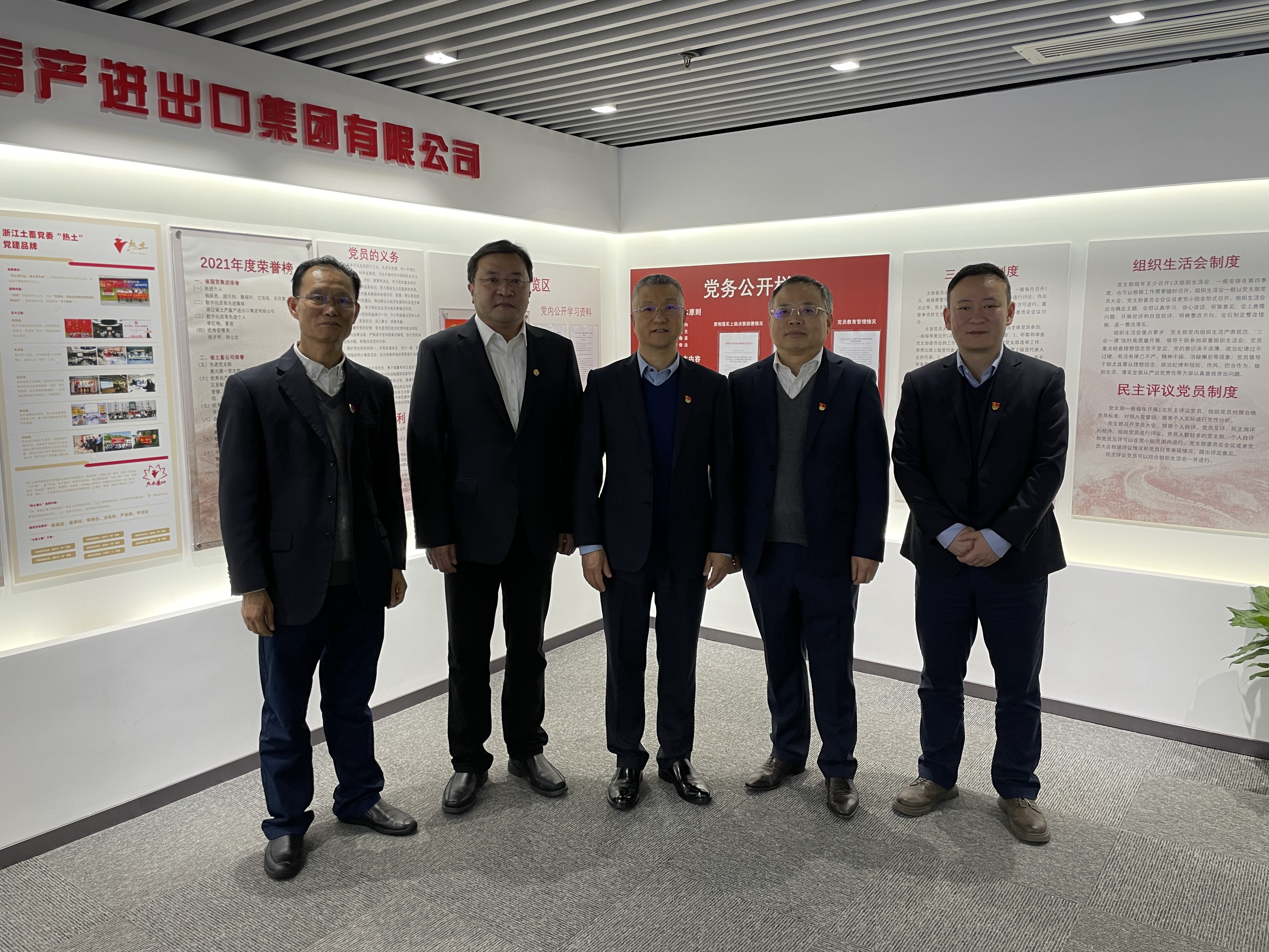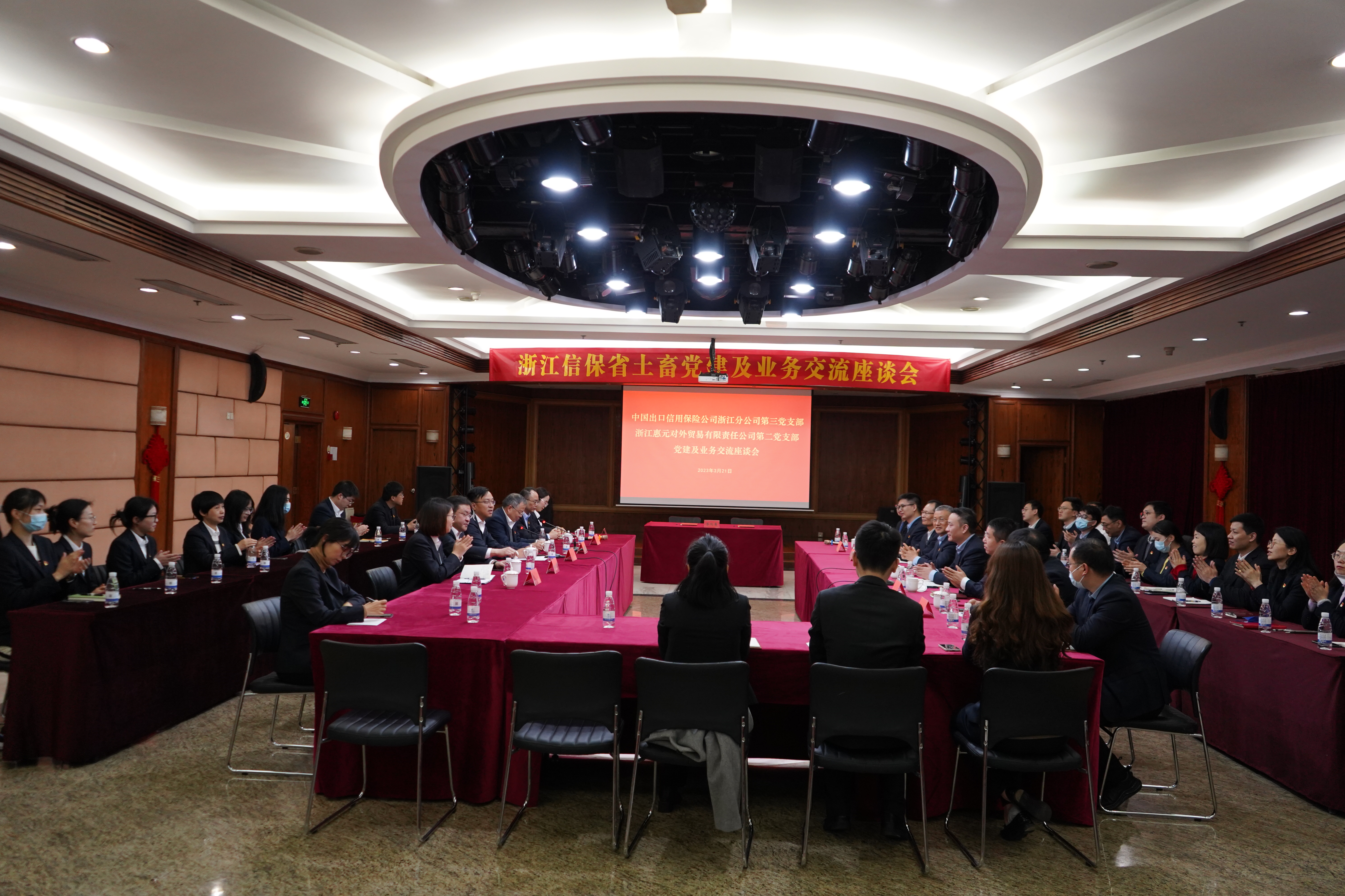 交流座談會上,張斌書記詳細(xì)介紹了浙江土畜經(jīng)營概況和黨建工作。他表示,浙江信保是土畜集團(tuán)多年的合作伙伴,為我司內(nèi)外貿(mào)業(yè)務(wù)發(fā)展保駕護(hù)航。此次支部共建有利于深化合作,兩個支部要充分發(fā)揮各自優(yōu)勢,形成互幫互助、聯(lián)合推動的整體合力。