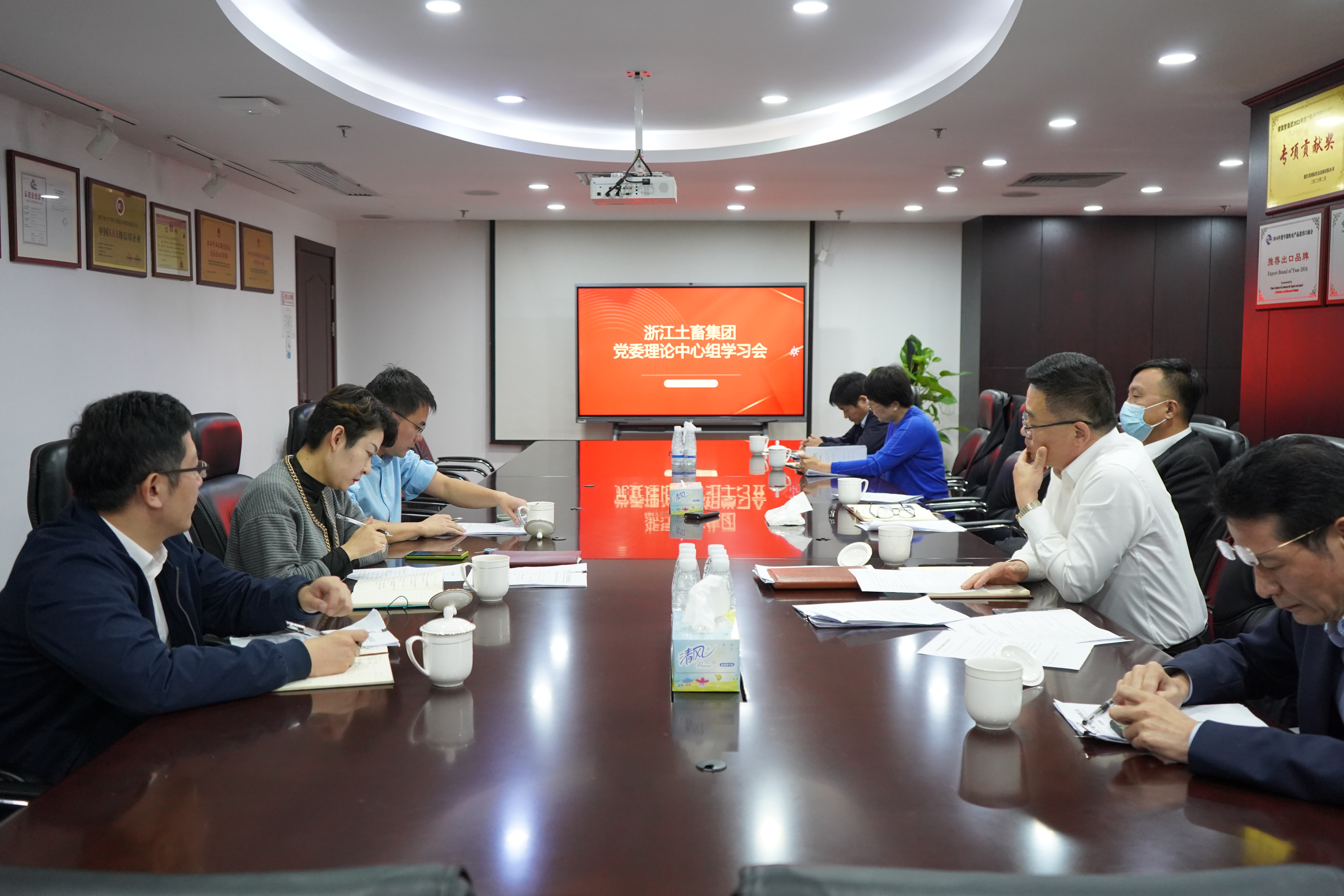 11月10日上午,浙江土畜集團召開2023年度第七次黨委理論學習中心組學習會,深入學習習近平新時代中國特色社會主義思想的世界觀和方法論,專題學習習近平總書記關于發揚斗爭精神、應對風險挑戰的重要論述和中央近期重要會議精神。公司黨委理論學習中心組成員參加會議,黨委書記、董事長張斌主持會議。