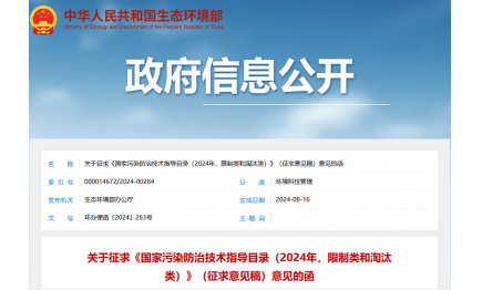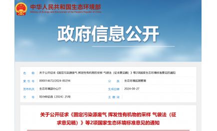 生態(tài)環(huán)境部發(fā)布2項(xiàng)國(guó)家生態(tài)環(huán)境標(biāo)準(zhǔn)征求意見稿2024-08-29 -